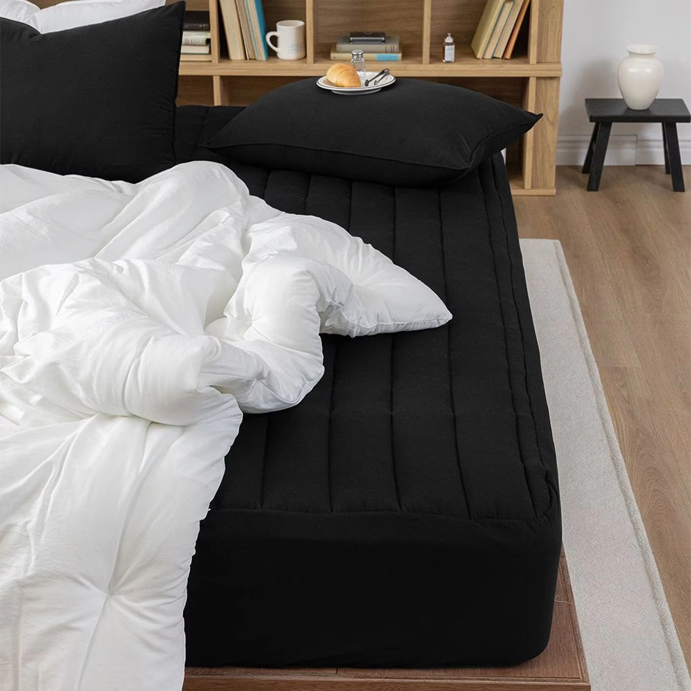 더욱 폭신한 누빔 매트리스 커버 말랑말랑 두부 원단 - 리얼 블랙