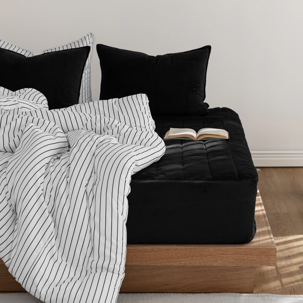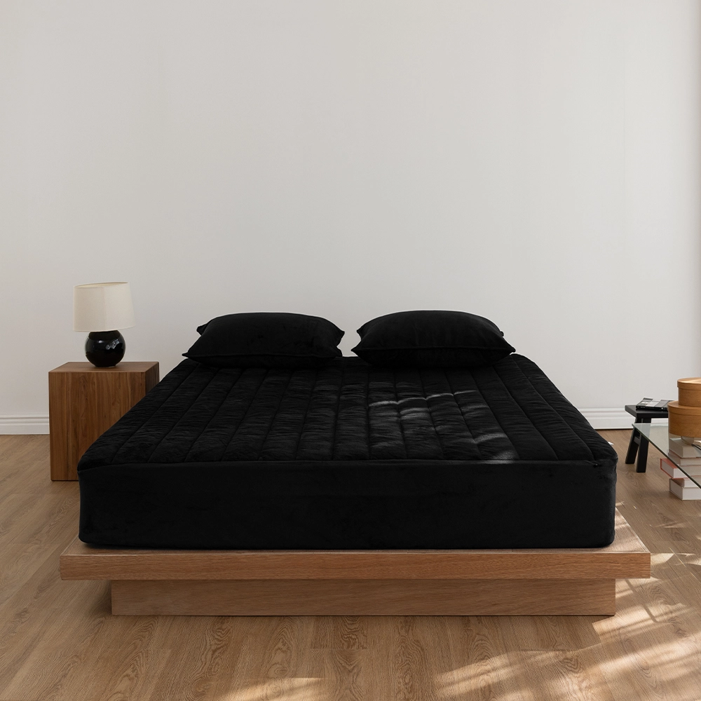 더욱 폭신한 누빔 매트리스 커버 말랑말랑 두부 원단 - 극세사 리얼 블랙