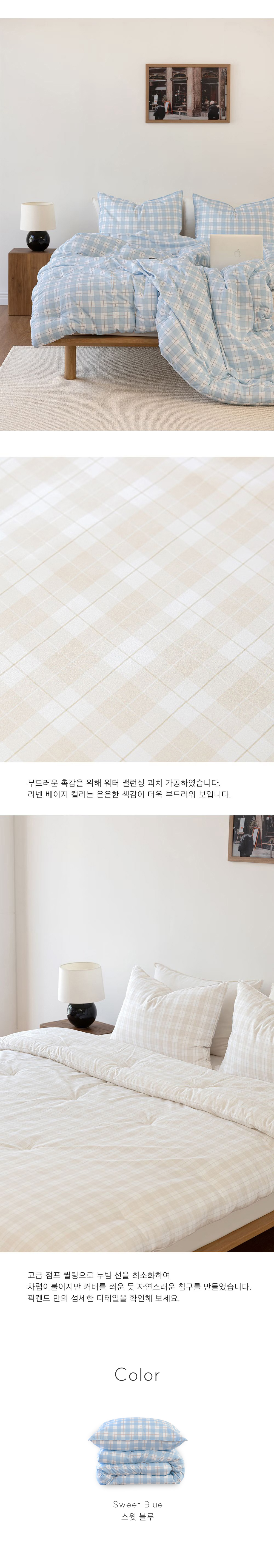 체크 체크인 프라하 사계절 부드러운 베개커버 - 스윗 블루