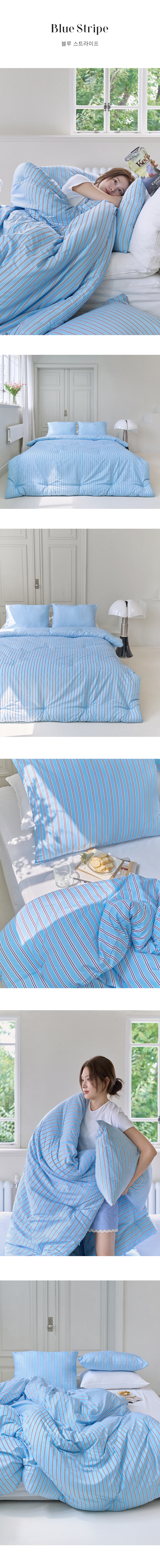 옥수수솜 항균 클래식 시리즈 차렵이불세트 - 블루 스트라이프