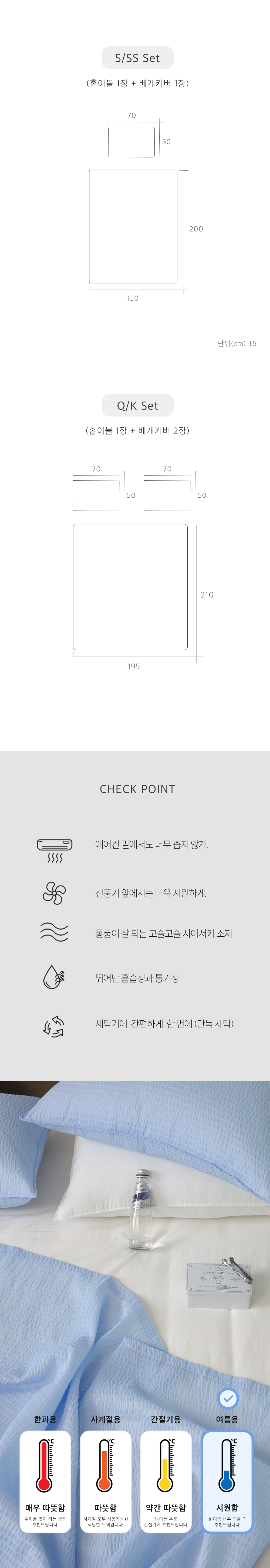앗!시원해 고슬고슬 샤베트 시어서커 여름 홑이불세트 - 소다 샤베트