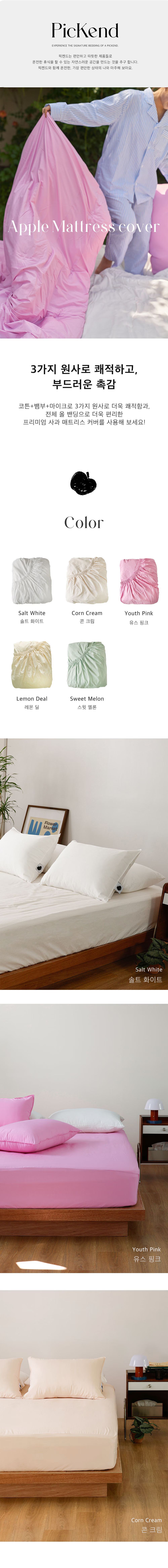 청량한 촉감 고밀도워싱 호텔 사과이불 매트리스커버 SS/Q - 솔트 화이트