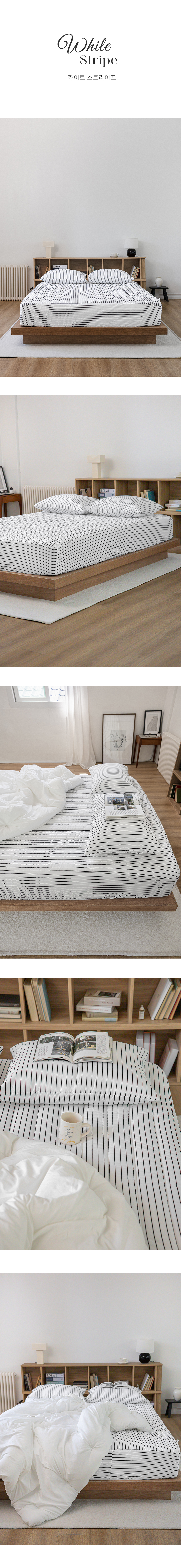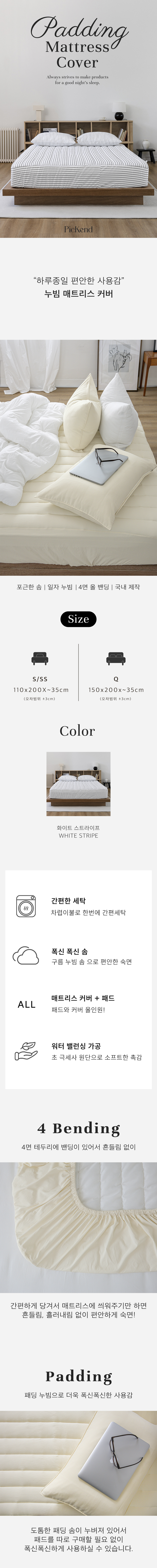 더욱 폭신한 누빔 매트리스 커버 - 화이트 스트라이프