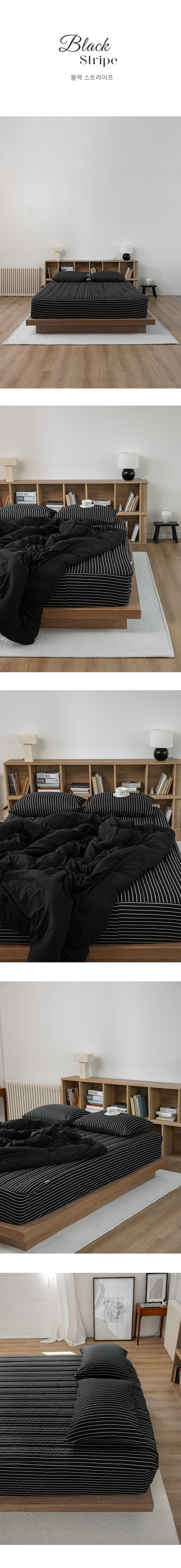 더욱 폭신한 누빔 매트리스 커버 - 블랙 스트라이프