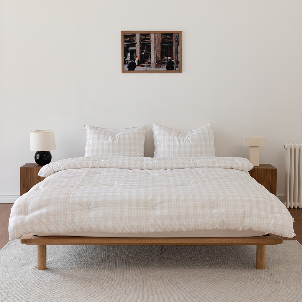 체크 체크인 프라하 사계절 옥수수솜 차렵이불 세트 - 리넨 베이지